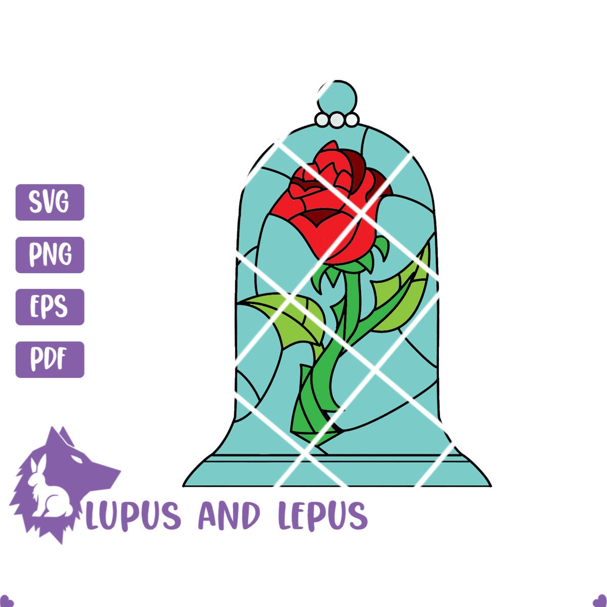 Digital File -Rose Svg, glass rose, everlasting rose, A Tail as Old as Time, Rose, Stained Glass, Cutting files, (eps, svg, pdf, png, jpeg)